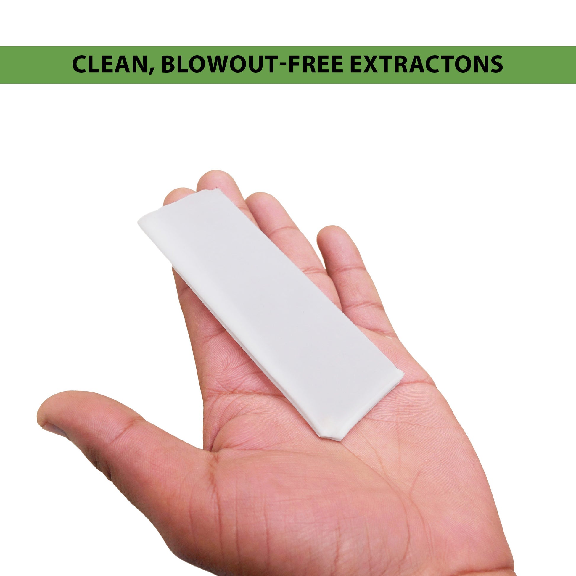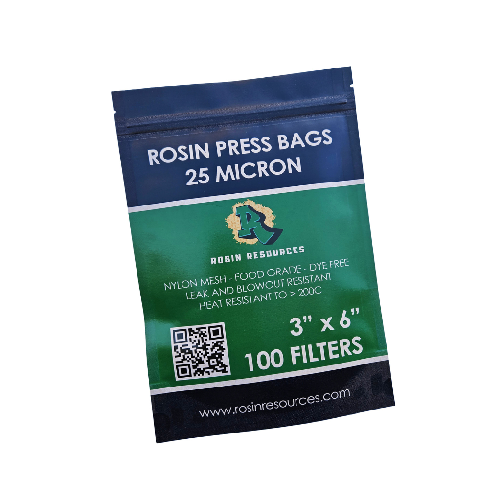 Our 25 micron press bags are specifically designed to withstand heat and pressure while providing unparalleled filtration performance when pressing bubble hash or flower. We use only high grade 100% nylon mesh, double-stitched with folded seams to reduce risk of blow-outs and engineered to contain fine particulate and reduce contamination in rosin. Heat safe up to 430ºF/225ºC and at pressures up to 1500PSI, although best performance for most input material will be at temperatures from 150-220F and pressures below 750 platen PSI for high quality input material.Â